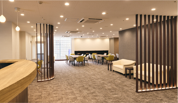 フロア全体が見渡せる明るくオープンなロビー。受講生の皆様が自由にご利用いただけるスペースもあり日常的な交流を生み出すことができます。